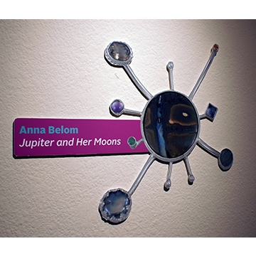 Kay Morrison stands near the larger-than-life image of her “Ruched” Cuff bracelet. Anna Belom’s “Jupiter and Her Moons” was also shown in a larger-than-life wall image.